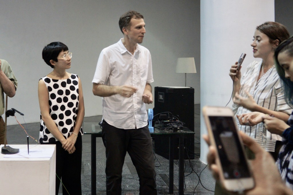 The very form of this work is an experiment. Instead of conducting a live performance in which we act as the main performers, having the boundary between us and the audience, we want the audience to become performers but at the same time being as they are. It is not plain talking because some people become highly aware of the fact that their voices are being “recorded”, their talks become an intentional performance, i.e., they become performers or composers. But it is at the same time not a performance in a traditional way, where people stylise their voices, their gestures, etc. At the same time, it is a sound performance where everyone joins in cracking and eating the sunflower seeds and using their voices to join in the conversation. Intentionally or unintentionally they also make a drawing with their voices.