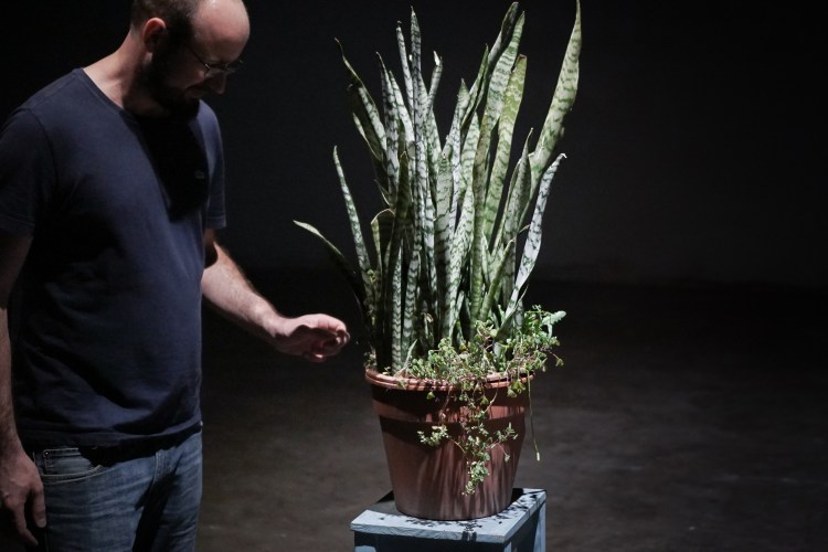 The audience is invited to interact with “Ficus sonoris” – a living plant – and create sounds by their varying intensities of touch.