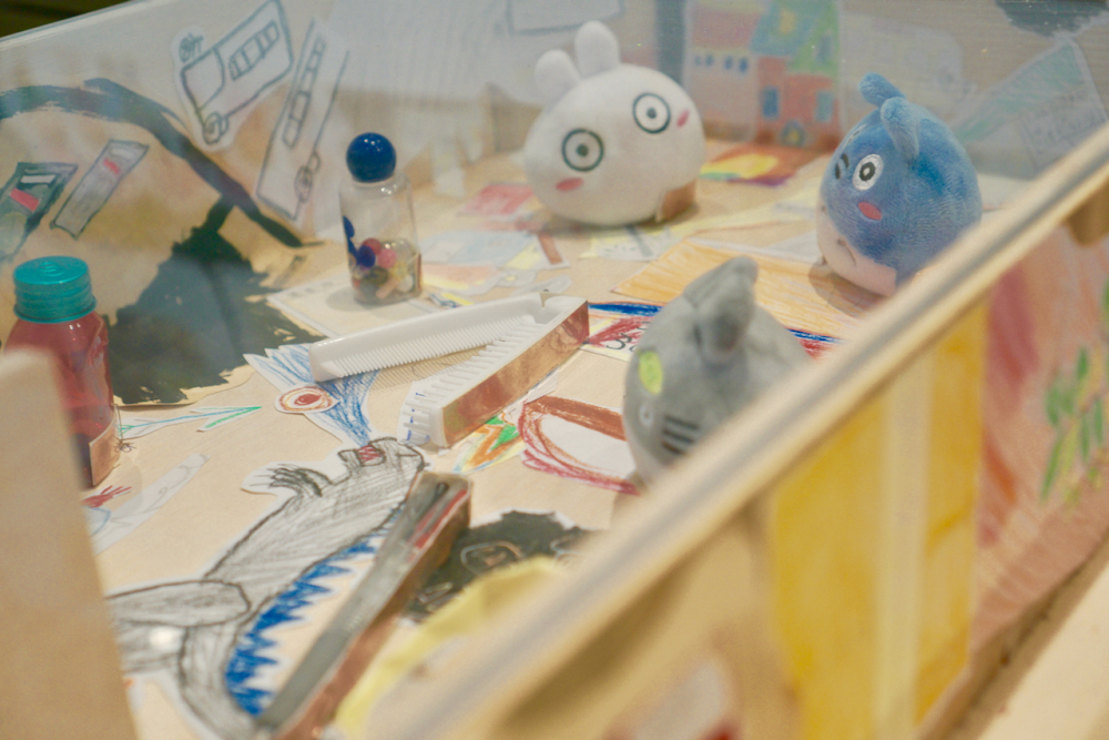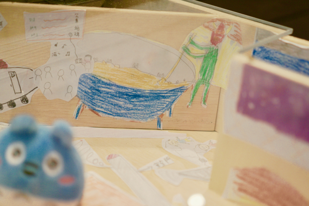 This installation is a collaboration between Siedl/Cao and the pupils of Taiping Elementary school. The objects in this marble labyrinth are old toys and objects from the pupils. These imaginative drawings are the pupils’ impression they have from the sound walk that Siedl/Cao and the pupils did together in the Dadaocheng neighborhood.